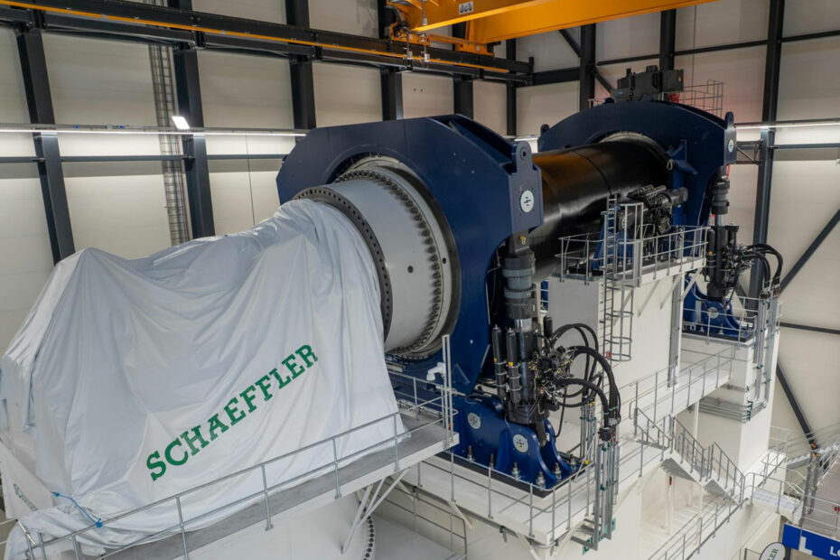 Schaeffler hat im dänischen Lindø als Partner des Lindø Offshore Renewables Center (LORC) den weltweit leistungsfähigsten Prüfstand für Rotorlagerungen in Betrieb genommen. Herzstück der Anlage ist die 560 Tonnen schwere Prüflasteinheit. Hier sollen die extremen Belastungen simuliert werden, denen die Rotorlagerungen von Windenergieanlagen ausgesetzt sind.