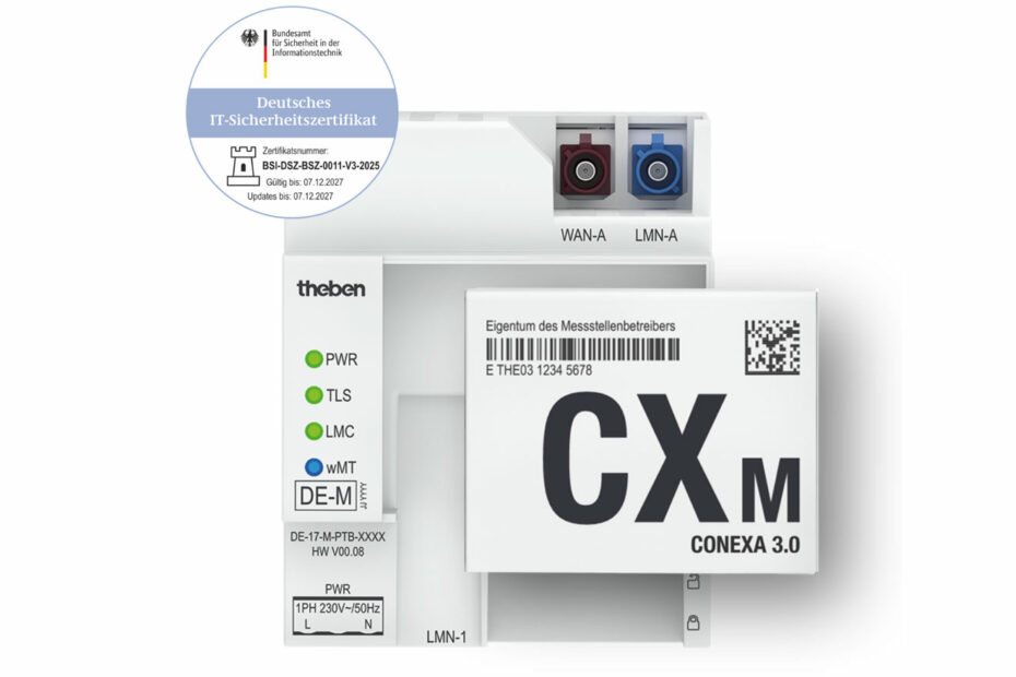 Theben Smart Energy erweitert die Einsatzmöglichkeiten seiner Smart-Meter-Gateways Conexa. Bestehende Geräte im Feld lassen sich um das Mehrwertmodul Flex ergänzen. Damit wird eine sofortige Steuerung nach $14a EnWG und $9 EEG möglich. Ein Hardwaretausch oder zusätzlicher Platzbedarf sind nicht erforderlich – das Modul wird lediglich aufgesteckt.